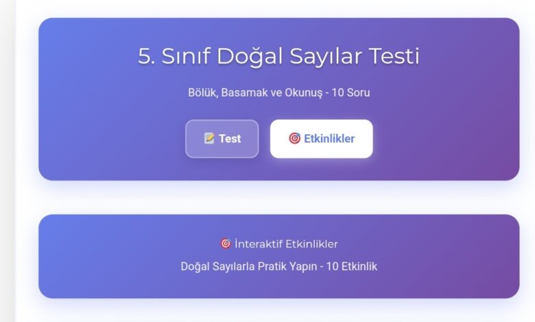5. Sınıf Doğal Sayılar Testi