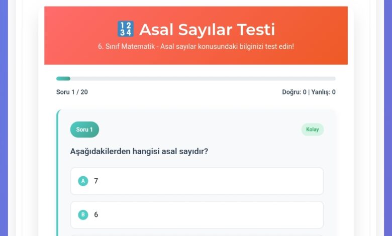 6.Sınıf Asal Sayılar Test