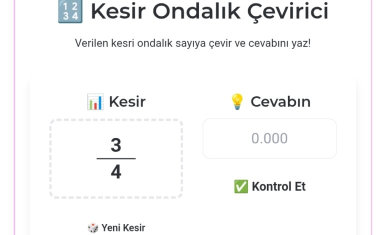 Basit kesirleri (3/4, 2/5) ondalık sayıya çevirme