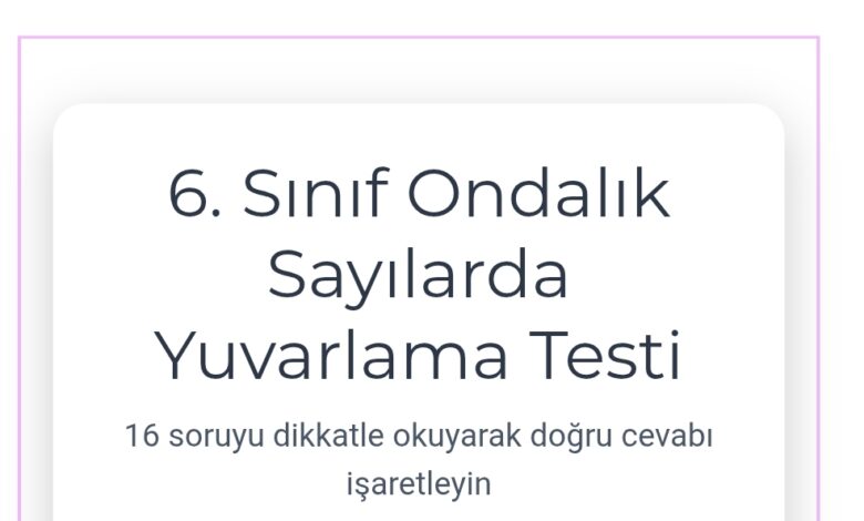 6. Sınıf Ondalık Sayılarda Yuvarlama Testi