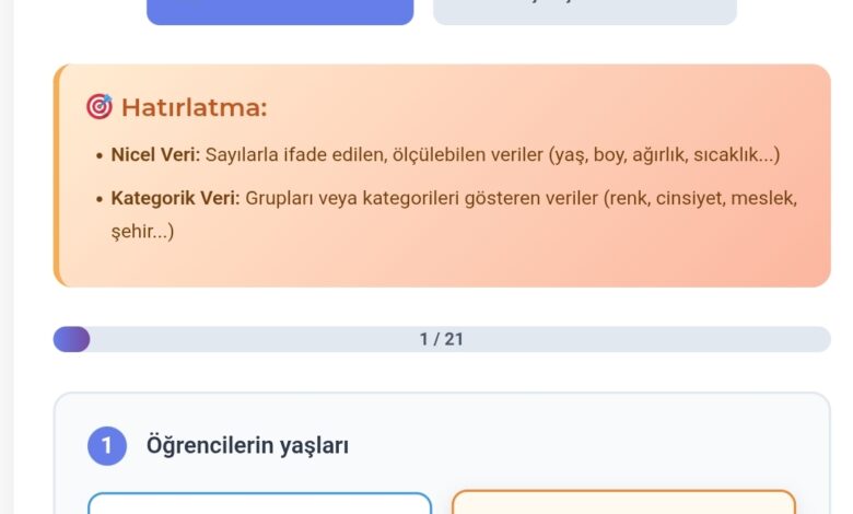 - Nicel Veri: Sayılarla ifade edilen, ölçülebilen veriler (yaş, boy, ağırlık, sıcaklık...)