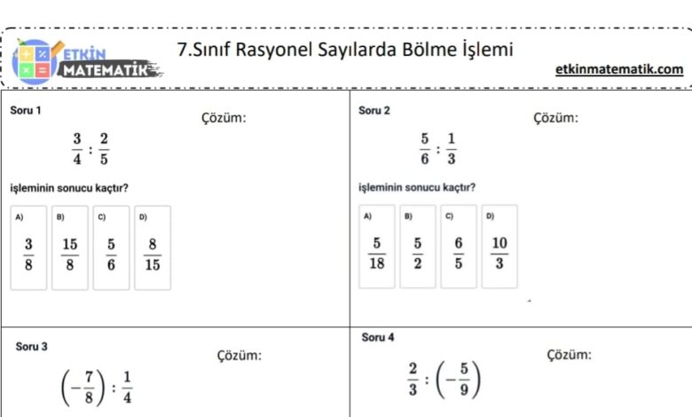 7. Sınıf Rasyonel Sayılarda Bölme İşlemi Konu Anlatımı