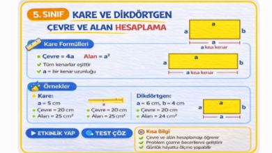 5.Sınıf Kare ve Dikdörtgenin Çevre ve Alanı Etkinlik ve Test Çöz