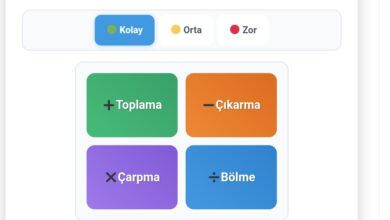 Matematik Dört İşlem Oyunu 🧮 Matematik Dört İşlem Oyunu Dört işlemi öğrenmenin eğlenceli yolu! 🟢 Kolay 🟡 Orta 🔴 Zor…