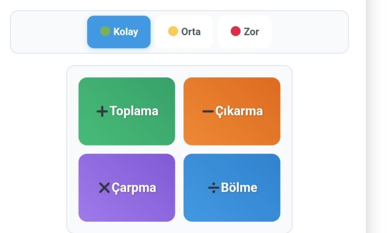🧮 Matematik Dört İşlem Oyunu